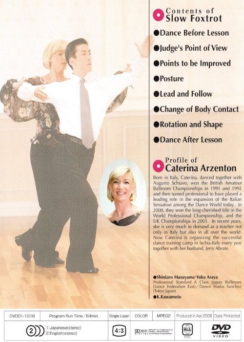 Caterina Arzenton erklärt mit Unterstützung von Shintaro Masuyama & Yoko Araya die wesentlichen Merkmale des Slowfox wie: Posture, Lead & Follow, Change of Body Contact, Leg Action, Rotation & Shape und wie man mit einfachen Tricks die tänzerische Leistung eines Tanzpaars deutlich verbessern kann.